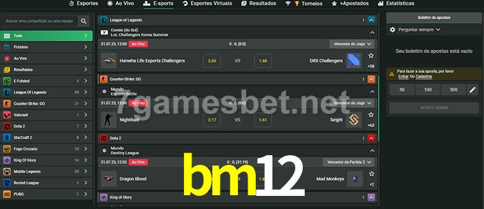 A aposta bm12 oferece aos jogadores a experiência mais conveniente de apostas em eSports!